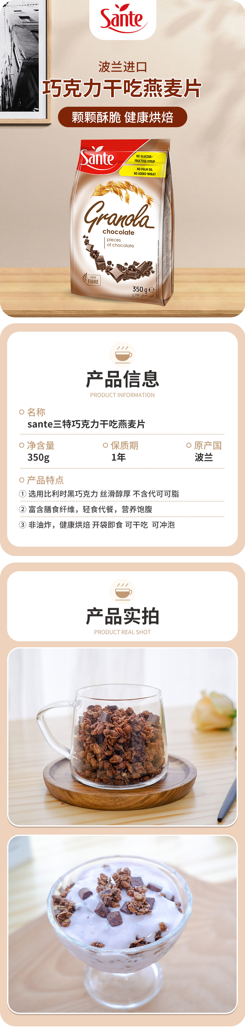 sante三特巧克力干吃燕麦片350g