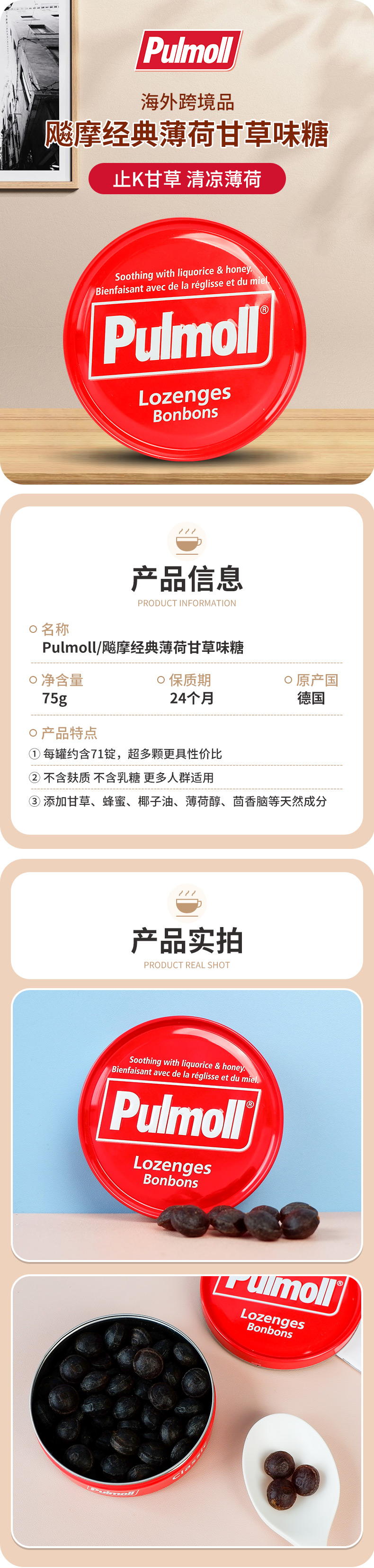 Pulmoll飚摩经典薄荷甘草味糖75g