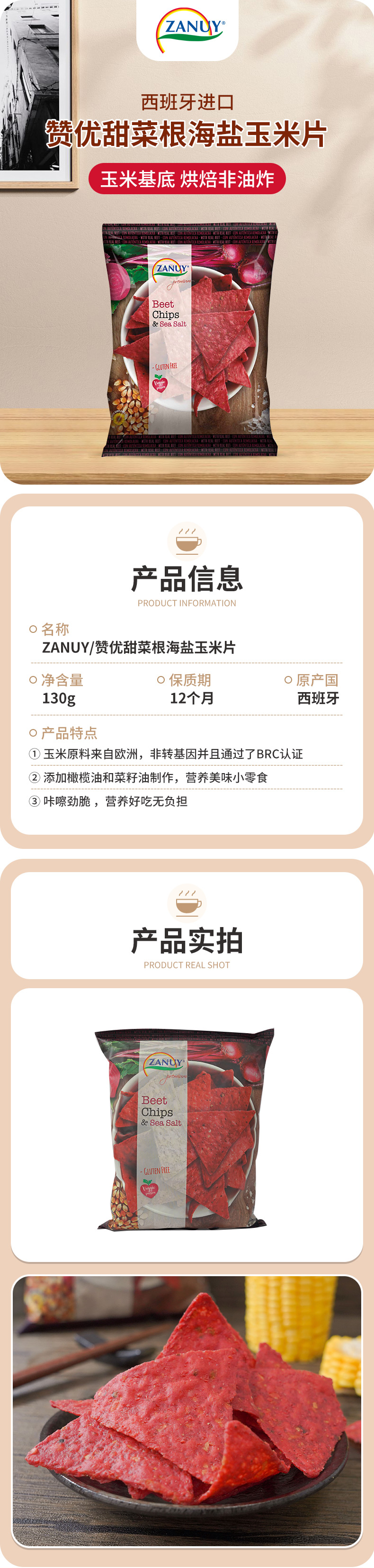 ZANUY赞优甜菜根海盐玉米片130g