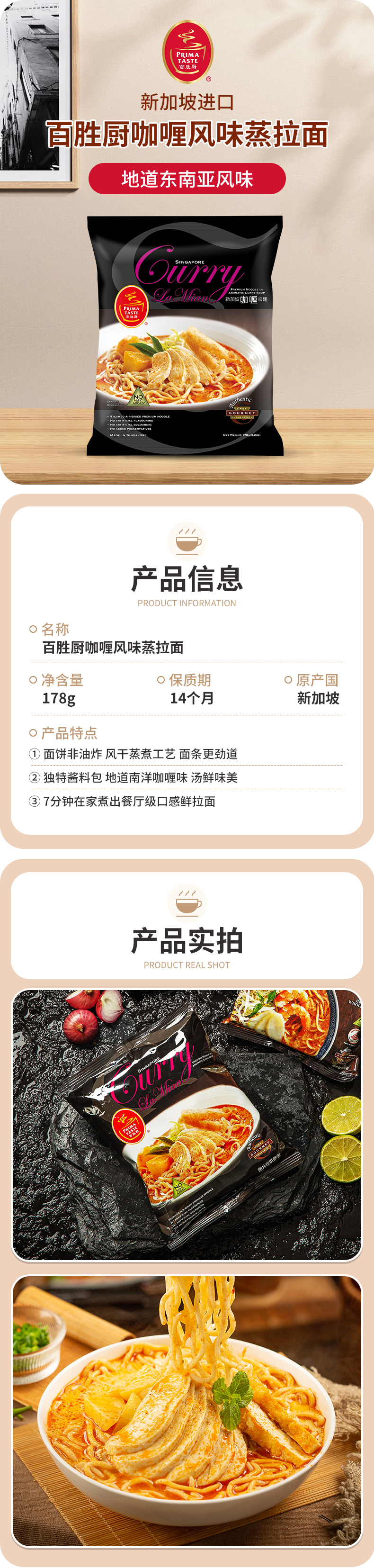百胜厨咖喱风味蒸拉面175g