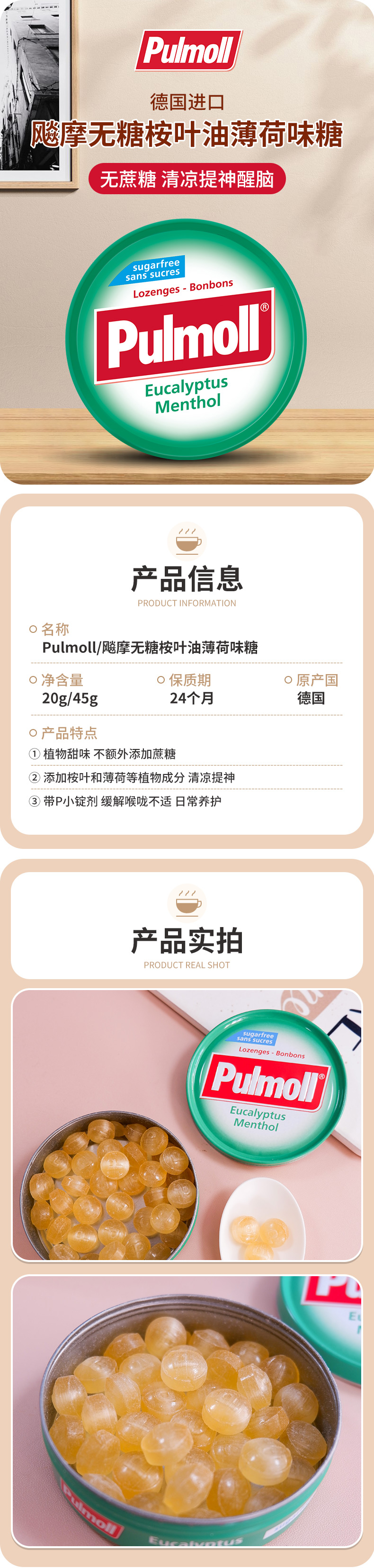 Pulmoll飚摩无糖桉叶油薄荷味糖45g